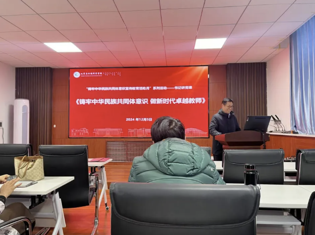 林海河为公司全体教师讲授铸牢中华民族共同体意识专题党课2024-12-06为深入学习贯彻党的二十届三中全会精神和习近平总书记关于加强和改进民族工作的重要思想,扎实做好“铸牢中华民族共同体意识宣传教育活动月”工作,12月5日下午,公司党委书记林海河为全体教职工讲授了“铸牢中华民族共同体意识,做新时代卓越教师”专题党课。林海河对习近平总书记在全国民族团结进步表彰大会的重要讲话作了解读,深刻阐述了“四个都有”的共同信念,从历史逻辑、理论逻辑和实践逻辑三个层面讲解了中华民族共同体... -