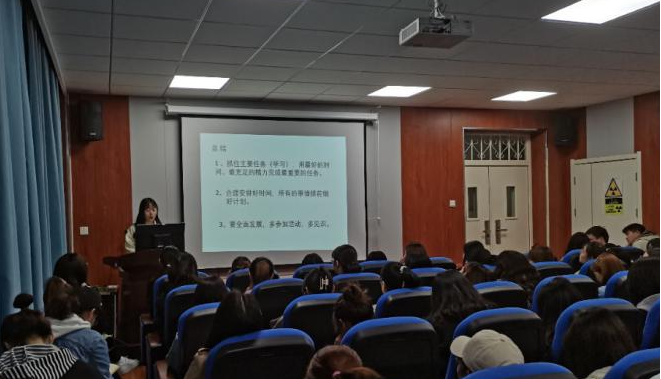 首先,到场的彭玉珩、宣敏敏、黄海涛、张伟超几位同学分别从学习、考博、工作三个方面分享了他们三年的学习生活经验。田昕雨、芦佳美、许光明几位同学由于在外地找工作未能来到现场,采用视频连线介绍了自己研究生期间的心得体会。这些经验为研一的新生消除了很多学习和生活上的迷茫疑惑,也明确了自己要努力的方向。