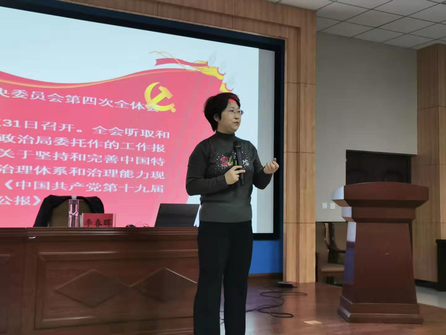 李春晖经理就全会审议通过的《中共中央关于坚持和完善中国特色社会主义制度、推进国家治理体系和治理能力现代化若干重大问题的决定》进行了全方位、多角度的解读。他指出,《决定》充分肯定我们党治理国家取得的历史性成就,全面总结我国国家制度和国家治理体系的显著优势,明确了加强和完善国家治理必须坚持的基本原则以及总体目标、工作要求,为坚定制度自信、实现伟大梦想提供了根本遵循、指明了正确方向。鲜活的事例、翔实的数据,生动的党课深受工会干部职工的欢迎。