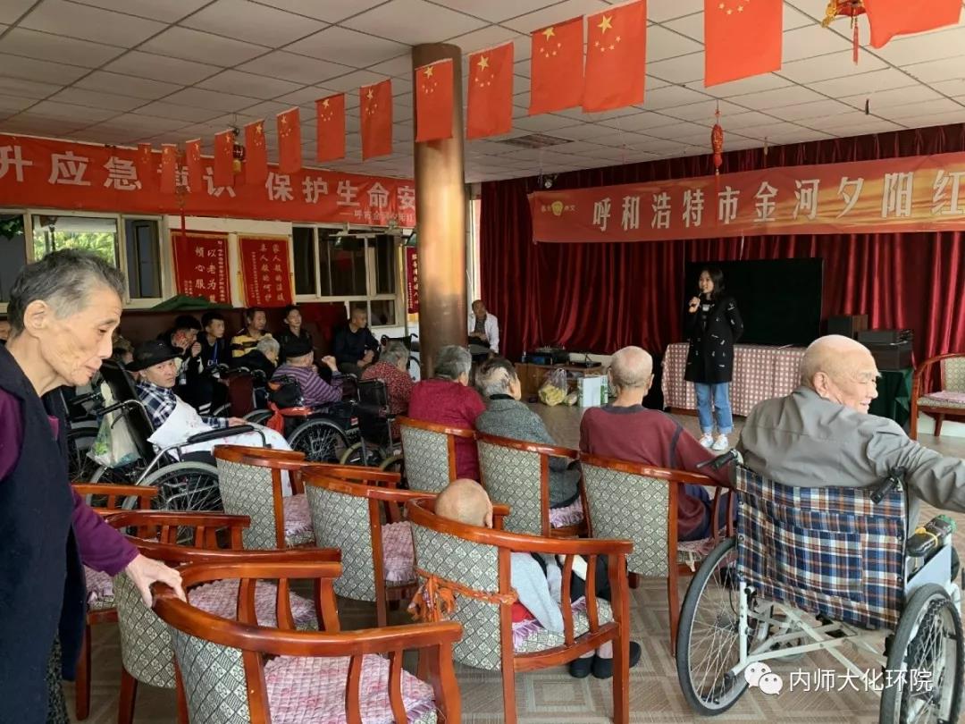细心的党员同志和志愿者们不仅陪老人们聊天,关心他们的身体状况,为他们讲笑话,还准备了文艺节目包括蒙古歌曲《父母亲》、舞蹈、演讲、京剧和评剧,最后还有全体党员为大家共同合唱《我和我的祖国》。整个屋子充满着欢声笑语,老人们开心的像个孩子,激动的为大家鼓掌,还有上台为这些志愿者们唱歌的奶奶。是笑声驱散了老人们的孤独,是陪伴赶走了他们的寂寞。时光荏苒,一下午的时间转眼即逝,在大家离开时,老人们红着眼眶,恋恋不舍,虽然仅仅几个小时,大家却结下了深深的感情。