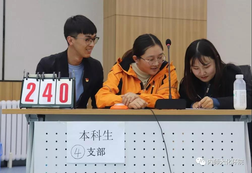 经过两个多小时紧张激烈的角逐,最终由无机材料党支部代表队和研究生代表队获得冠军,绿色催化党支部、本科生党支部和环境化学党支部荣获优秀奖。