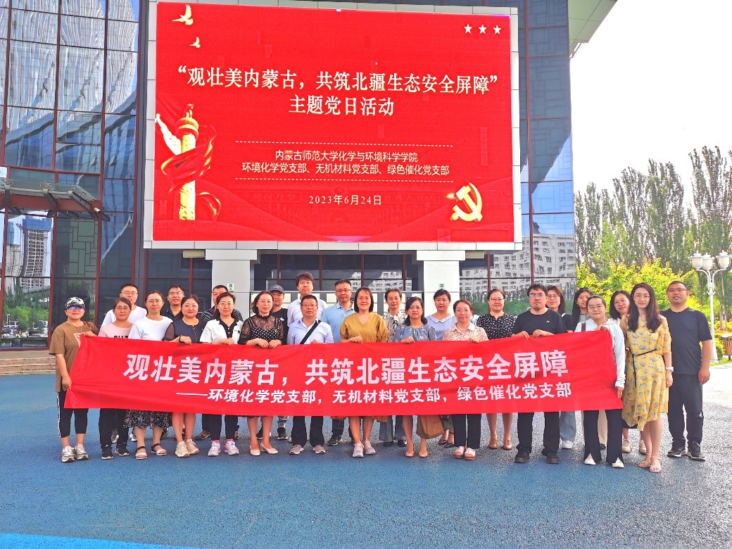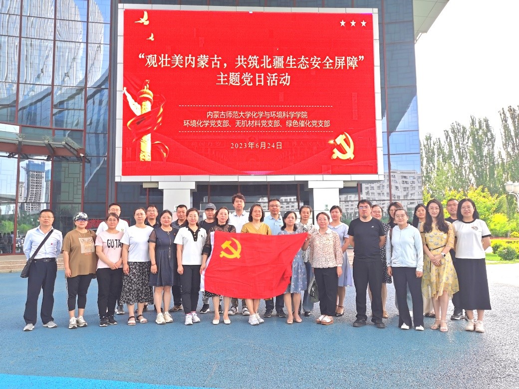 在“七一”党的生日来临之际,为更好学习贯彻习近平总书记在内蒙古考察期间关于筑牢我国北方重要生态安全屏障的重要指示重要讲话精神,2023年6月24日上午,B-Sports环境化学党支部、无机材料党支部和绿色催化党支部在内蒙古自然博物馆联合开展了“观壮美内蒙古,共筑北疆生态安全屏障”主题党日活动。
