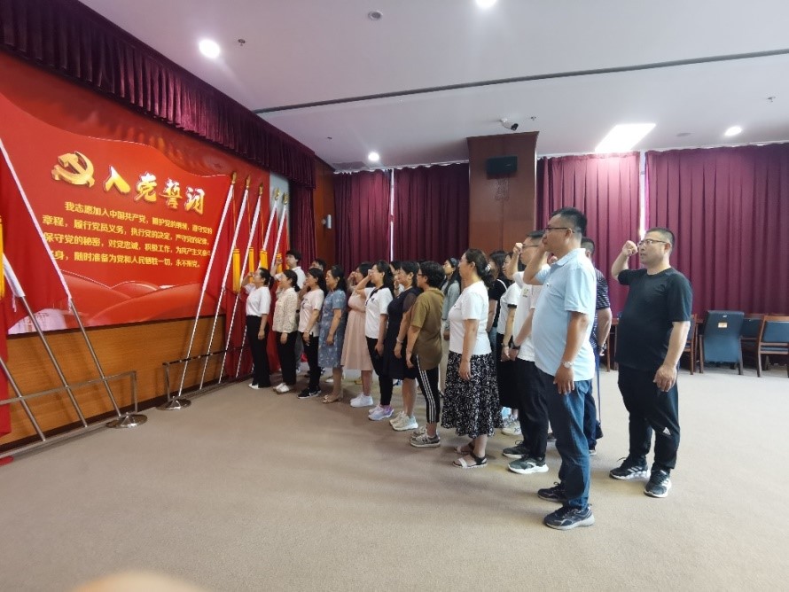 参观学习结束后,党员同志们在党旗下重温入党誓词,共庆党的102岁生日。