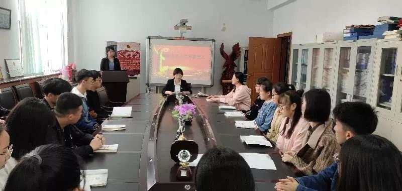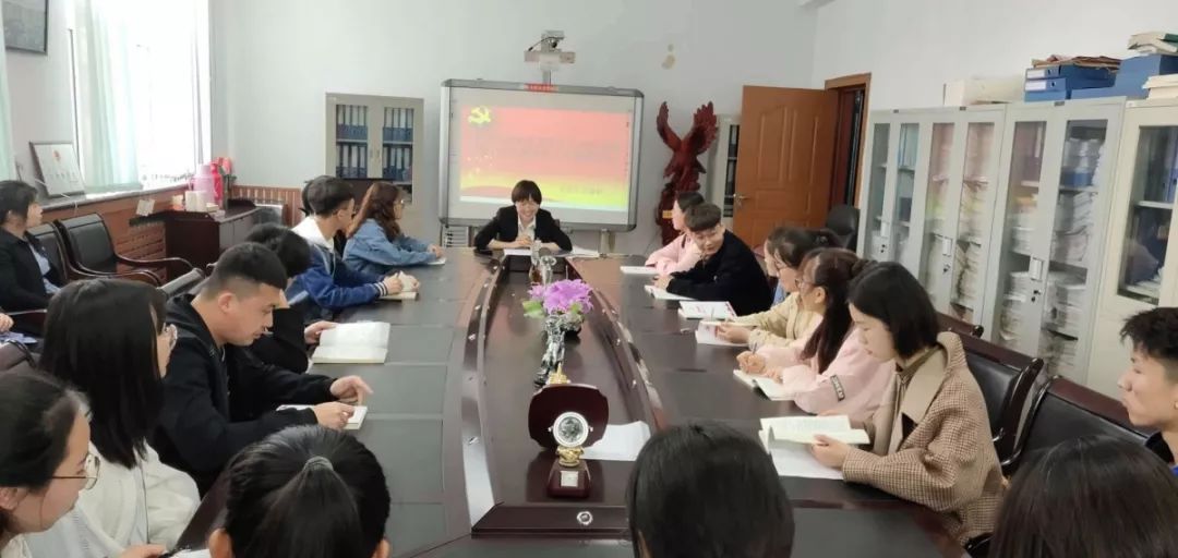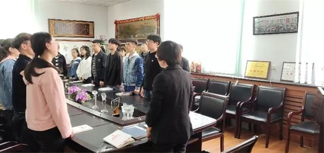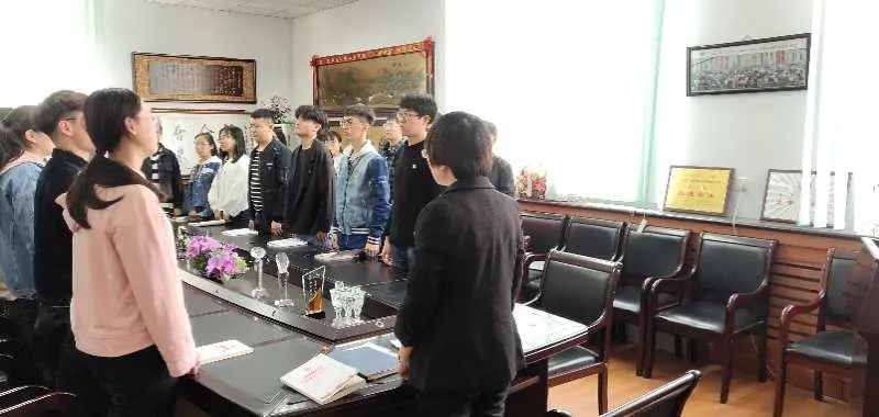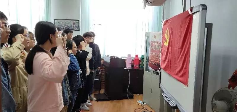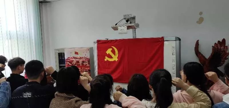 在庄重严肃的气氛下宣誓仪式开始。首先全体起立奏唱《国际歌》。接着由党组织负责同志王淑娟老师进行致词。