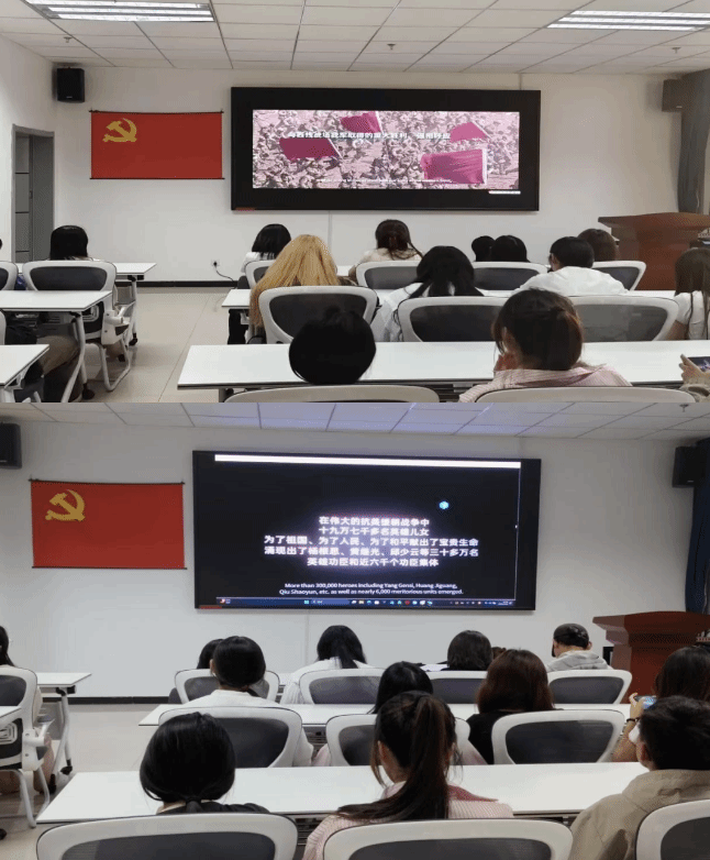 红色电影是重现尘封往事的时光之窗,更是礼赞革命精神的艺术长卷。为引导青年学子深植社会主义核心价值观,筑牢理想信念根基,5月15日,公司在理工楼B座908组织员工开展红色观影活动。活动现场,同学们共同观看经典影片《长津湖》,在跌宕剧情与震撼画面中,穿越历史长河,感悟革命先辈浴血奋战的精神伟力,接受了一场深刻的爱国主义精神洗礼。