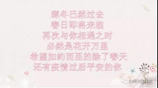 “寒冬已然过去,春日即将来临,再次与你相遇之时,必然是花开万里。希望疫情过后如约而至的除了春天,还有疫情过后平安的你。”