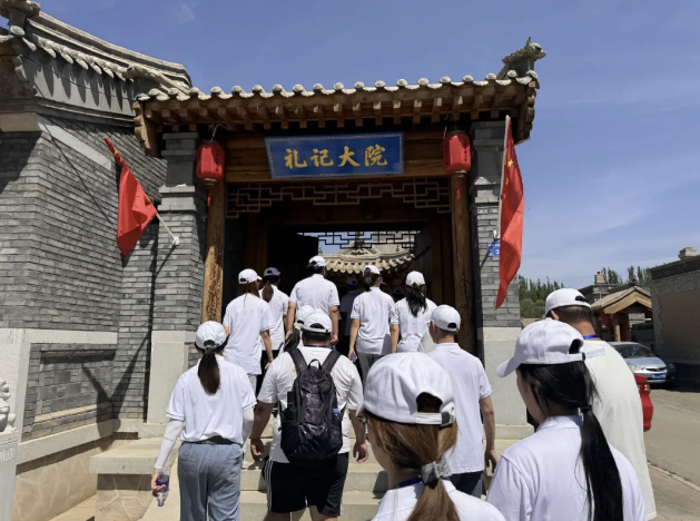 之后,同学们走进了礼记大院,负责人讲述了河套平原的历史悠久,在不同历史时期有着不同的地位和作用,显示了河套平原在历史上的重要战略地位。此外,同学们了解到河套平原的自然环境也十分独特,依山带水,阡陌纵横,河水滔滔,沃野千里,是一个适宜农业生产和季节性放牧的地区。经过对“河套里”土地文化博览园的介绍交流,负责人呼吁同学们都能成为土地生态环境的保护者、建设者、受益者,共享蓝天、碧水、净土。同学们自行参观非遗项目,感受河套大地的温度。