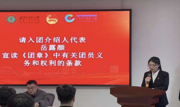 在青春的璀璨华章里,共青团如同一座闪耀的灯塔,照亮着广大青年前行的道路,指引着他们追寻理想与信念。共青团不仅是先进青年的组织,更是培养未来社会栋梁、传承红色基因、弘扬时代精神的重要摇篮。为凝聚青春力量,激发青年学子的爱国情怀与社会责任感,引领他们树立正确的世界观、人生观和价值观,让青春的活力与信仰的光辉在此交融汇聚,为实现中华民族伟大复兴的中国梦注入源源不断的新生力量,11月14日,公司共青团委员会于理工楼B座908会议室隆重举行入团仪式。团总支副书记阿斯汉夫,员工会主席团成员李多,54名新发展团员参加本次仪式,团总支组织部成员王凤凤主持。