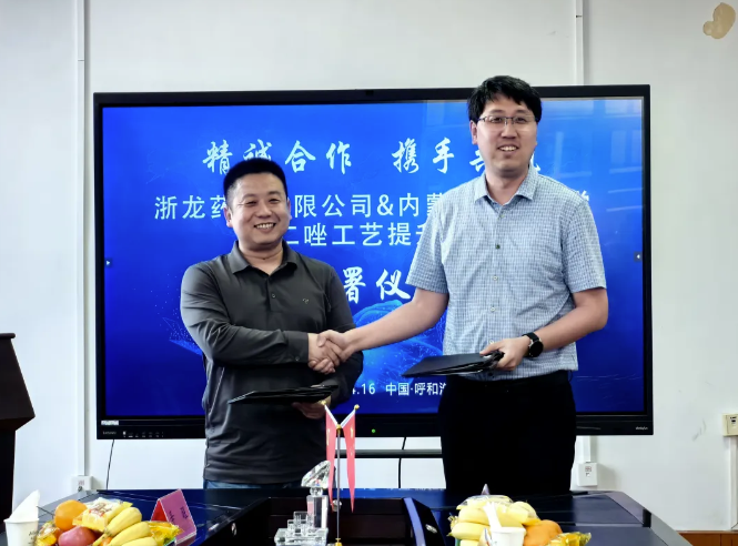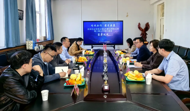为贯彻落实国家、自治区关于产教融合、校企合作相关政策要求,进一步加强校企合作,深化科研产业化融合,推动科研-企业协同创新,落实自治区“五大任务”,4月16日,王帅教授团队与浙龙药业有限公司校企合作签约仪式在赛罕校区化学楼 315 会议室举行,浙龙药业有限公司总经理张隆、副总经理于连友,公司党委书记林海河,党委副书记、副经理范磊,党委委员、副经理包永胜及相关专业老师参加会议,会议由化学系主任王帅主持。