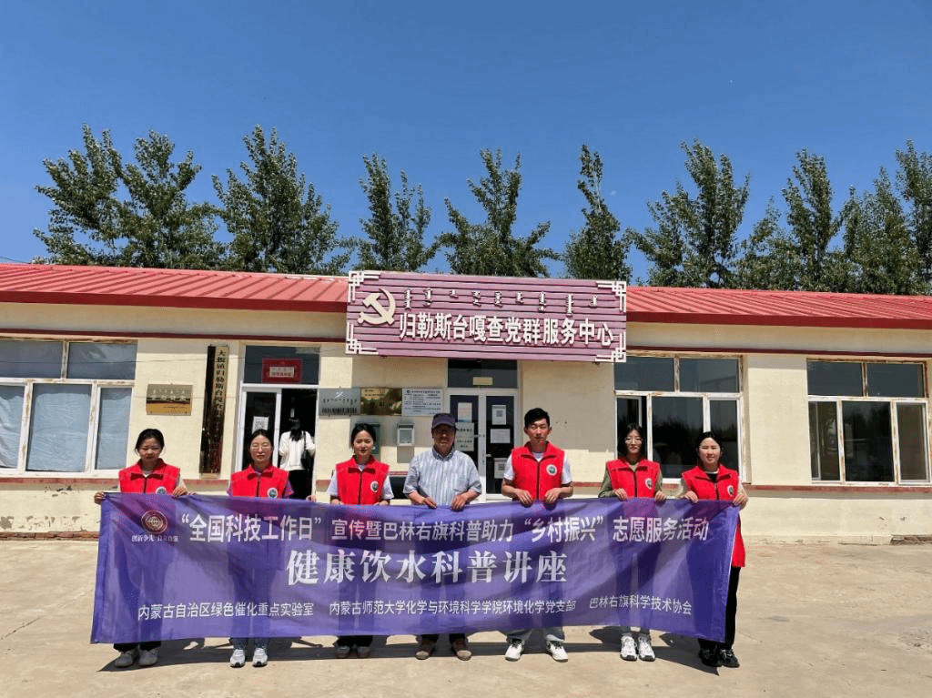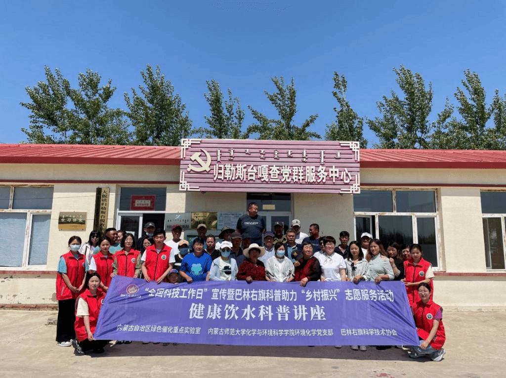 为深入贯彻落实习近平总书记关于教育的重要论述以及科普和科学素质建设的重要论述精神,为进一步提升农牧民群众生活质量,倡导科学健康生活 ,必一运动官网化学与环境科公司,内蒙古自治区绿色催化重点实验室,萨嘎拉副教授带领员工远赴赤峰巴林右旗归勒斯台嘎查,参加主题为“健康饮水科普讲座”的“全国科技工作者日”宣传既巴林右旗科普助力“乡村振兴”志愿者服务活动。巴林右旗科协党组书记、主席娜布其、大板镇党委书记乌云达来、驻村工作队、嘎查两委班子、以及农牧民群众参加了本次活动。
