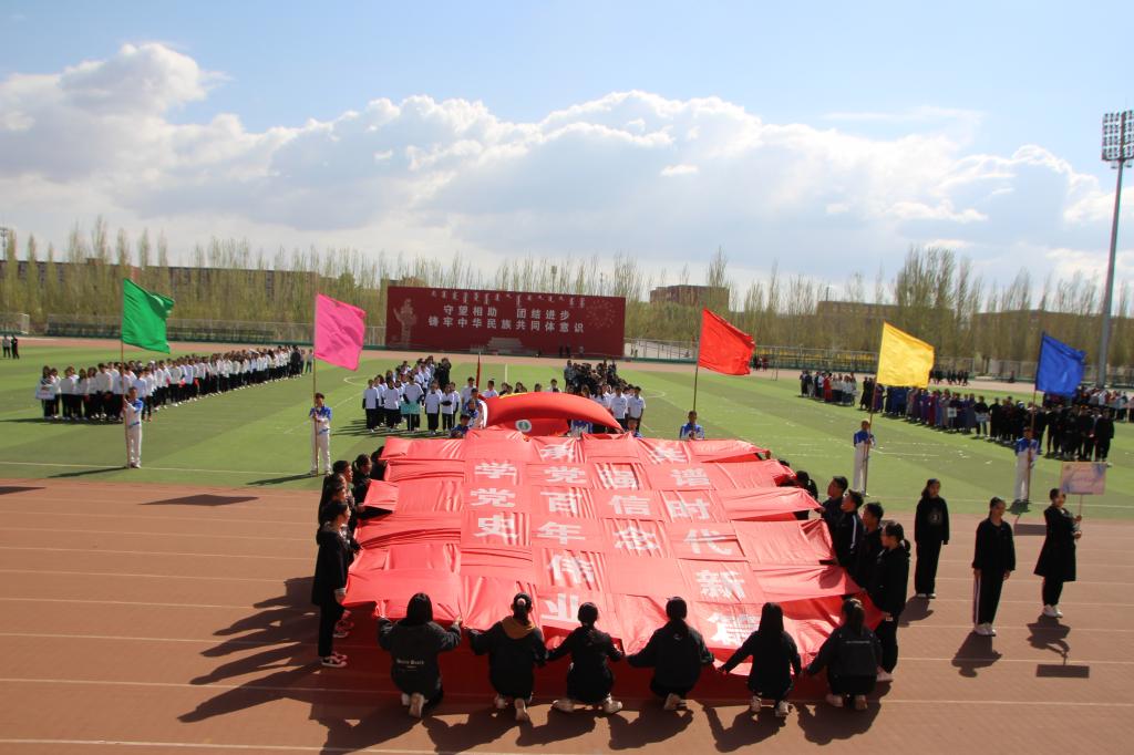 上午9时,伴随着激昂的运动员进行曲,国旗护卫队、彩旗方队、教职工代表队、运动员方队以及研究生方队依次入场。各入场方队以极具特色的服装、队列、道具展现着各班级的精神风貌,全体运动员排成“100”的字形来庆祝中国共产党成立100周年。