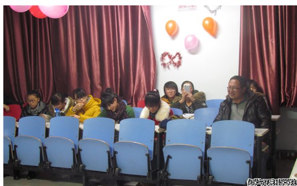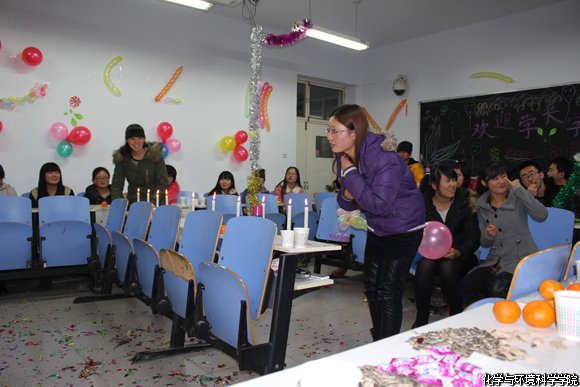 傍晚时分,田楼207至209及213至215的楼道里就异于寻常的热闹。13级各班同学积极主动地在自己的活动教室里精心准备着。蒙班于213教室进行活动,他们精心准备的PPt首先展示给大家的就是他们班温暖的大合照!柔和的音乐,柔和的灯光,气氛温馨!汉班于214教室进行活动,一进门便可见他们精心准备的彩色灯饰,再进入教室,内容丰富的板报,彩条、彩球,五彩纷呈,可见汉班同学的用心。材料班于215进行活动,动作迅速的同学们一早就整装待发。环一于207教室进行活动,他们的PPt主题鲜明,环二于208教室进行活动,别出心裁的同学们亲手制作拉花,而黑板上展翅高飞的板报更表明他们迎风起航的决心。环三于209教室进行活动,彩球夺目,自制的彩光效果也让人赞赏。