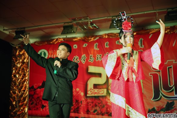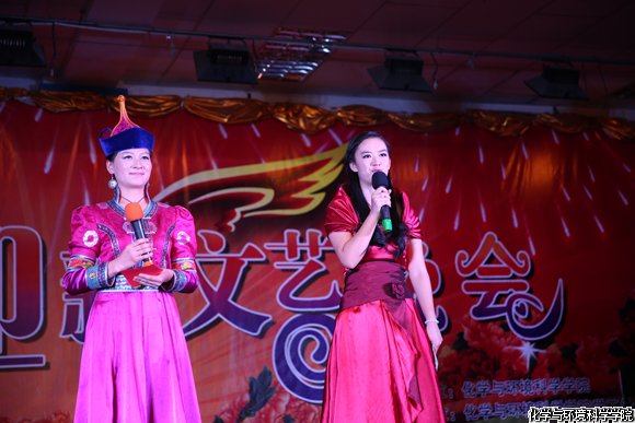 文艺晚会演出2个半小时。热情豪放的蒙古族舞蹈拉开了序幕,点燃了现场观众的激情。火爆的街舞、流行的现代舞与双节棍表演引人入胜,一个个高难度动作引来观众阵阵掌声。小品《非诚勿扰》《环保模特队》 《宿舍风波》更是精彩纷呈。表演者夸张的动作,丰富的面部表情及恰到好处的幽默艺术,令台下观众捧腹大笑。歌曲《新贵妃醉酒》毫不逊色,以其动听的歌声给大家留下深刻的印象。舞蹈《WAKA WAKA》、《奔腾》使大家领略了蒙古族热情淳朴的风情。教师合唱 《相亲相爱一家人》,成为文艺晚会的亮点,台下经久不息的掌声将晚会再次推向高潮。筷子舞蹈《化环草原情》,热情洋溢的舞姿,欢快激荡的筷子声,让我们再次回到大草原那宽广的情怀。最后公司员工会副主席林玉涛领衔的一首《飞得更高》歌曲联唱,表达了化环院全体学子的欢快心声。
