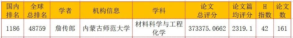 在材料科学领域,全球共有8585名学者入选全球前10万名学者名单,其中中国2666名学者入选。内蒙古自治区共有3位学者入选,公司必一运动詹传郎教授进入榜单,在全国排名前45%,内蒙古排第一位。彰显了公司在该领域的科研实力。