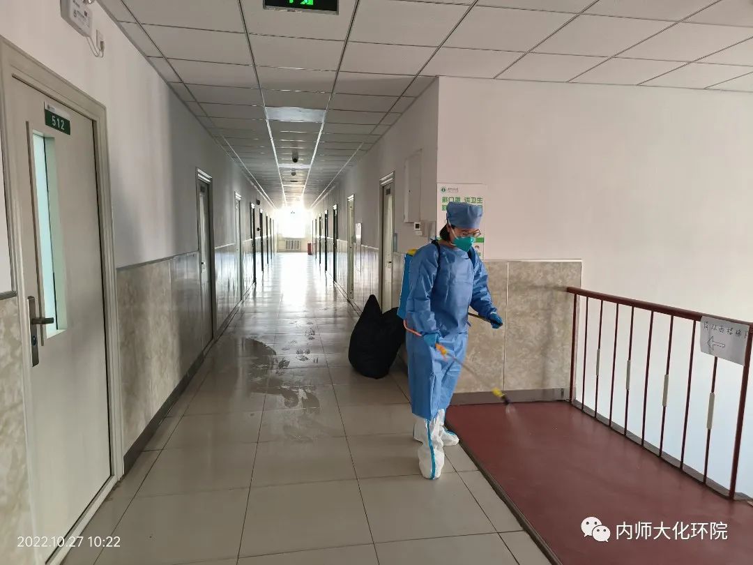 “向阳而生,逐光而行”。开展消毒消杀是切断疫情传播的有效手段,是疫情防控的重要措施。为进一步加强宿舍内的安全管理和卫生防疫工作,优化宿舍楼内的生活环境,消杀志愿者们根据指令开展消杀工作,他们分工明确,配合默契。随着一阵阵机器的轰鸣声,白色消毒液呈喷雾状喷涌而出,志愿者们一边挥动着消毒机,一边背身前进,对宿舍走廊,楼梯间等区域进行了全覆盖、无死角的消毒消杀。密不透风的防护服和繁琐的工作,让消杀志愿者们汗流浃背。对此,他们毫无怨言,还表示:“我们就是要保证一处不漏,让病毒‘无机可乘’。”