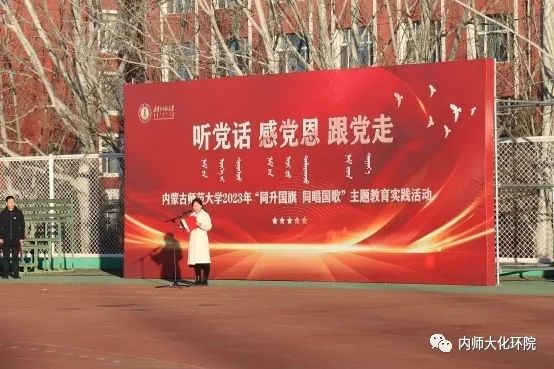 升旗完毕后,由数学科学公司代表进行国旗下发言。过去的2022年注定是不平凡的一年,我们共克时艰,迎来了曙光。网课期间,我们看到了老师们的辛勤付出,也看到了同学们刻苦学习的身影。在全体内师人的共同努力下,公司取得多项成绩与成就。展望2023,希望全体学子继续发扬献身求实团结奋进的校训,奋进当下,在新学期的航线上扬帆起航。