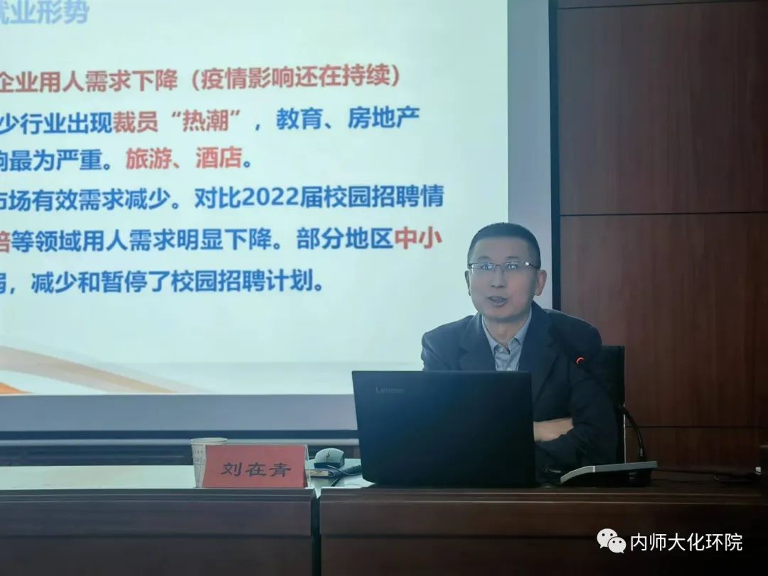 为深入贯彻教育部、自治区教育厅、公司关于就业创业工作的会议精神,稳步推进公司2023年就业创业工作按时、高效开展,3月30日,公司在赛罕校区聚贤楼213号会议室召开了2023年就业创业工作推进会,公司党委书记刘子忠、副书记、主持工作副经理詹传郎、副经理包永胜、人才招聘处就业市场部部长刘在青、职业发展指导中心主任王贺成、全体教师及2023届本、硕毕业生参加会议。会议由员工工作负责人范磊老师主持。