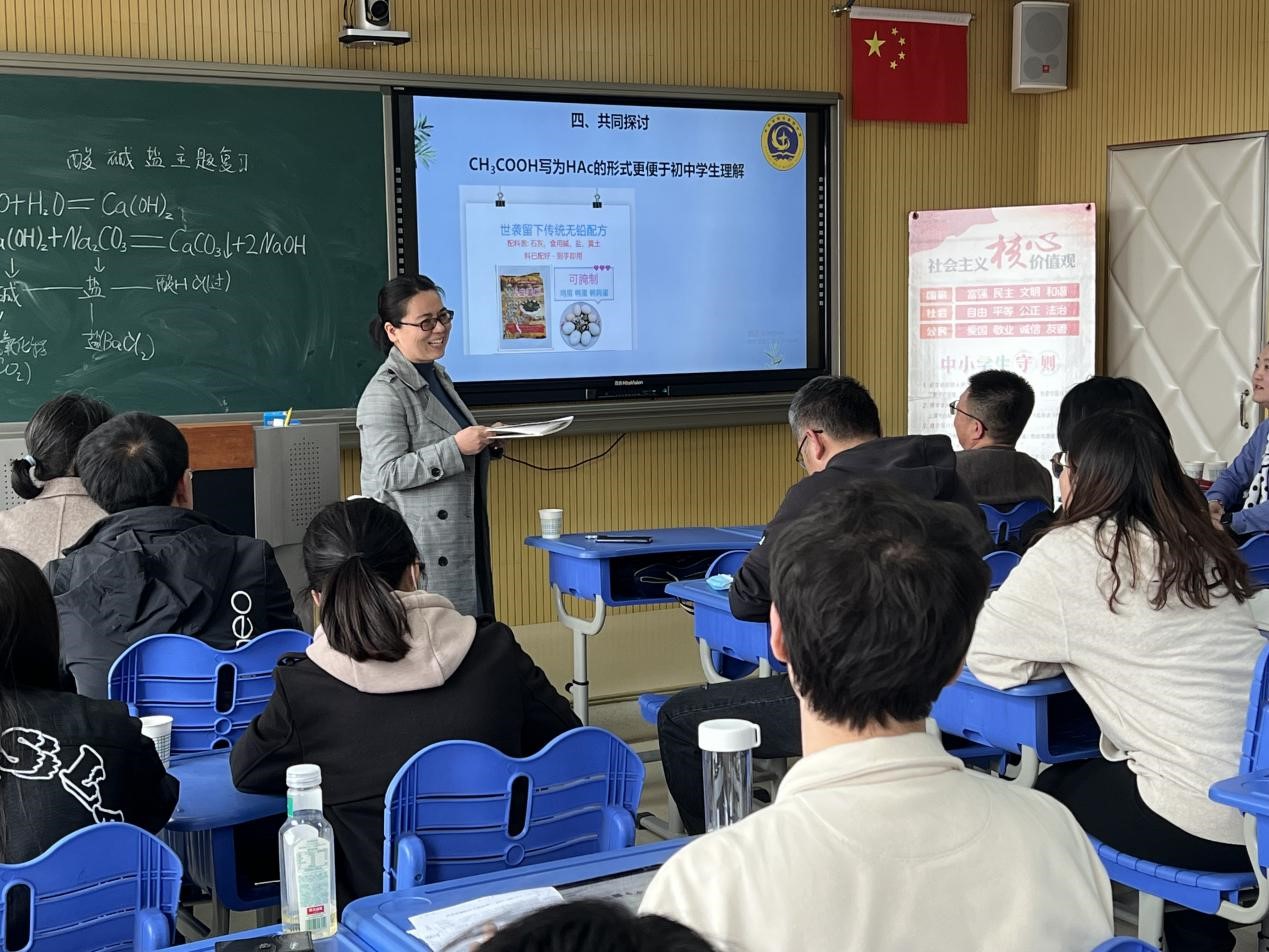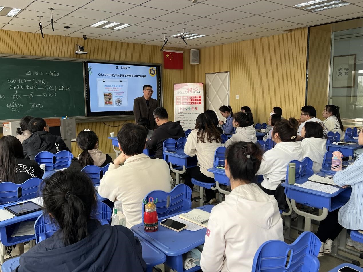 赵霞老师以《体会皮蛋制作中的化学》为主题作展示课,以“制作皮蛋—享用皮蛋—皮蛋废料处理”为主线开展项目式教学。以真实情境贯穿整节课,员工兴趣浓厚,在轻松愉快的氛围下获取知识;以任务-活动驱动为策略,建构员工处理实际问题的学科思维能力。真正做到素养落在课堂,课标落实在教学中。同学们也在赵老师的课堂中真正学习到了什么是项目式教学,项目式教学是如何开展的,任务-活动设计与衔接的巧妙之处。