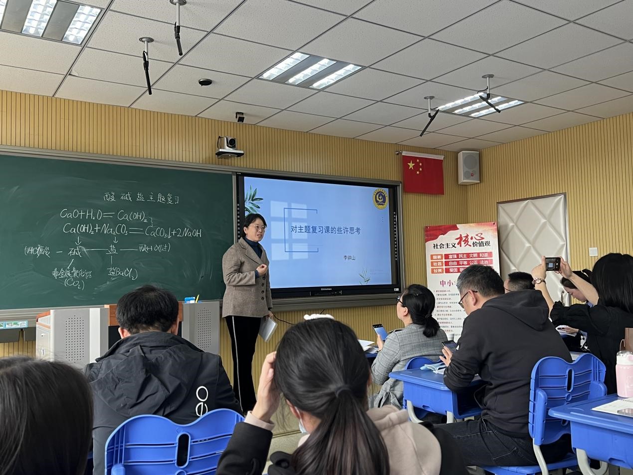 赵霞老师从单元整体的角度分享了“酸碱盐主题复习”课的设计思路。同学们在赵老师的说课中也深深体会到了备好一节课背后的细节与不易。