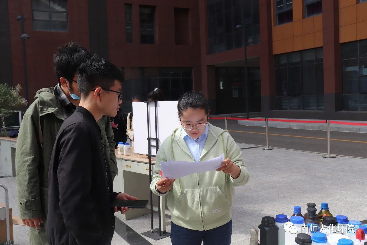在老师的安排部署下,所有工作人员分工合作,参与实验场地布置、搬桌子、安装海报展板,张贴横幅等工作。随后由老师为参加活动的同学分发相应的实验药品,并叮嘱他们实验时的注意事项。参加活动的同学们将自己的实验桌面打扫干净并准备好实验所需药品与仪器。