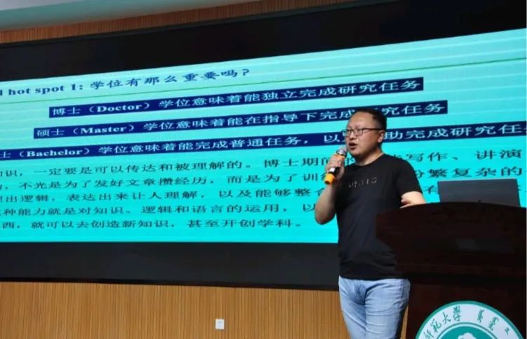 讲座先从小学到大学的知识系统的变化引入,生动形象的用圆圈演示的方式,改变了在场同学对于知识体系构建的固有认知,提醒在场师生自省自励,在不断提升自身学识的同时传播知识。同时也针对时下热门话题“ChatGPT是否会代替人类”表达了自身观点。他强调,人类在化学研究中具有不可撼动的领导地位。随后从日常生活中举例讲解化学常识,无论香飘十里的烈酒还是顽固难消的油渍,背后都有自己的深意,一个个晦涩难懂的化学原理变得生动形象,伴随着风趣幽默的讲解,现场气氛逐渐进入高潮。讲座后半段,包永胜提出了当代化学基础研究的“卡脖子”技术,随即向在场师生提出号召,希望可以看到更多学子在有机化学的路上深造耕耘,在科学研究路上开辟新路,实现人生价值。最后,在场员工积极提问,教授耐心解答,加深了师生对于投身化学研究的决心。