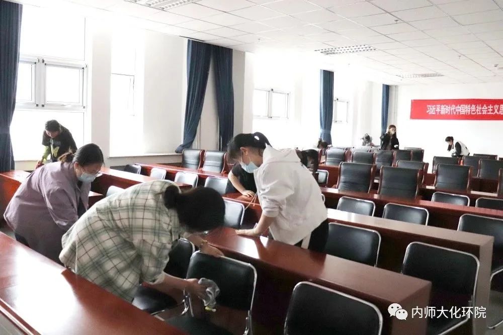 在工作人员有序组织下,同学们携带不同的工具到各自负责的教室进行打扫。所有同学一丝不苟地清扫每一个地方,每一个角落,大家互相配合,齐心协力,以认真负责的态度,将各个区域打扫得焕然一新。