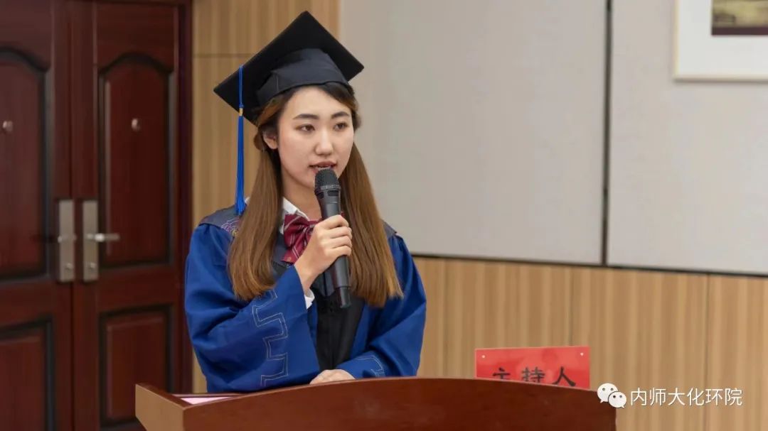 2020级物理化学专业温昕同学代表研究生毕业生发言。她将“成长”和“收获”凝练为自己读研三年的关键词,坦言自己在一次次实验中学会了分析与思考,忍耐和坚持,收获了成长,并表示从今往后要用自己的学识、阅历、经验为国家的未来贡献自己的力量。
