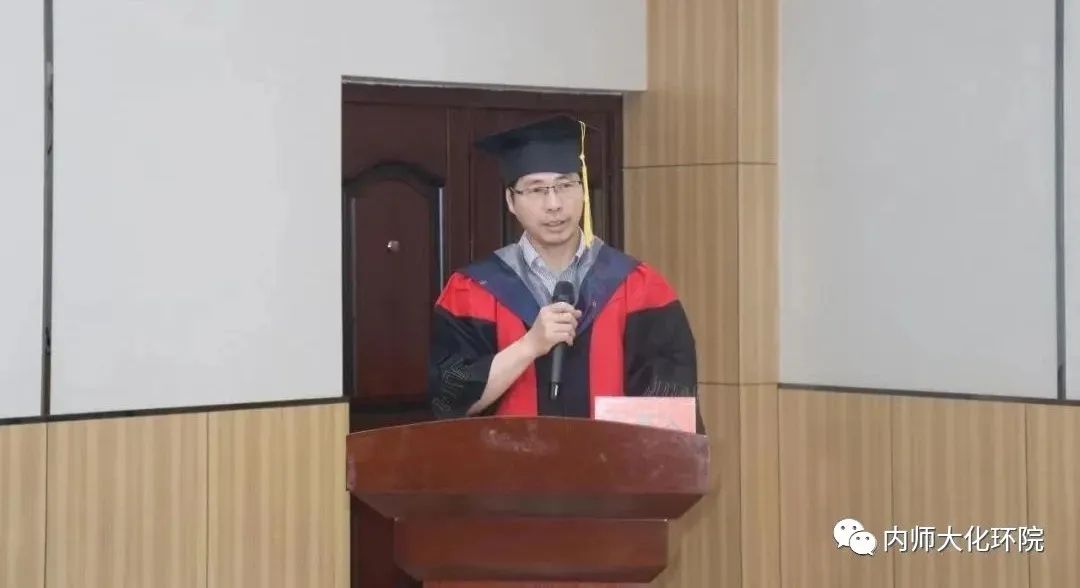 有机教研室主任、博士生导师王帅教授代表教师发言,王老师勉励毕业生们面对人生要自信、要勇敢;面对生活要从容、要冷静;面对生活要有情怀、有心胸,能够勇敢地创造光明的未来。
