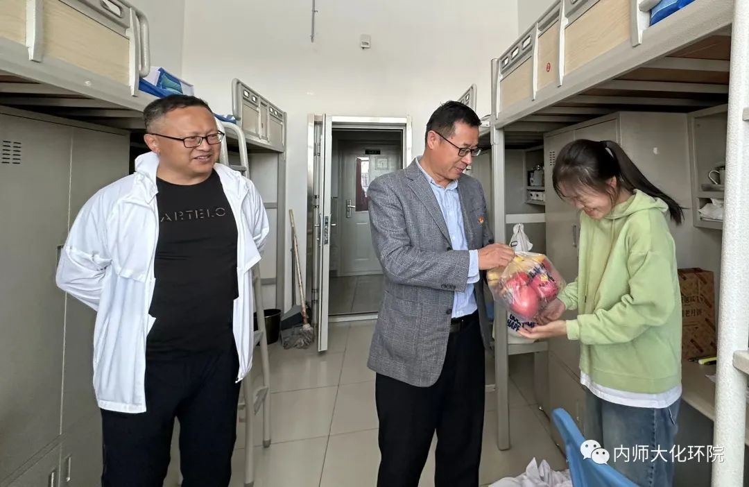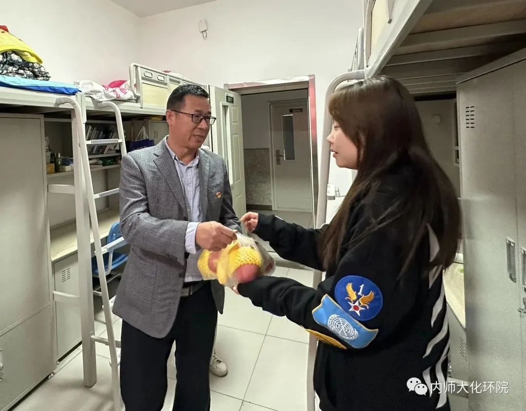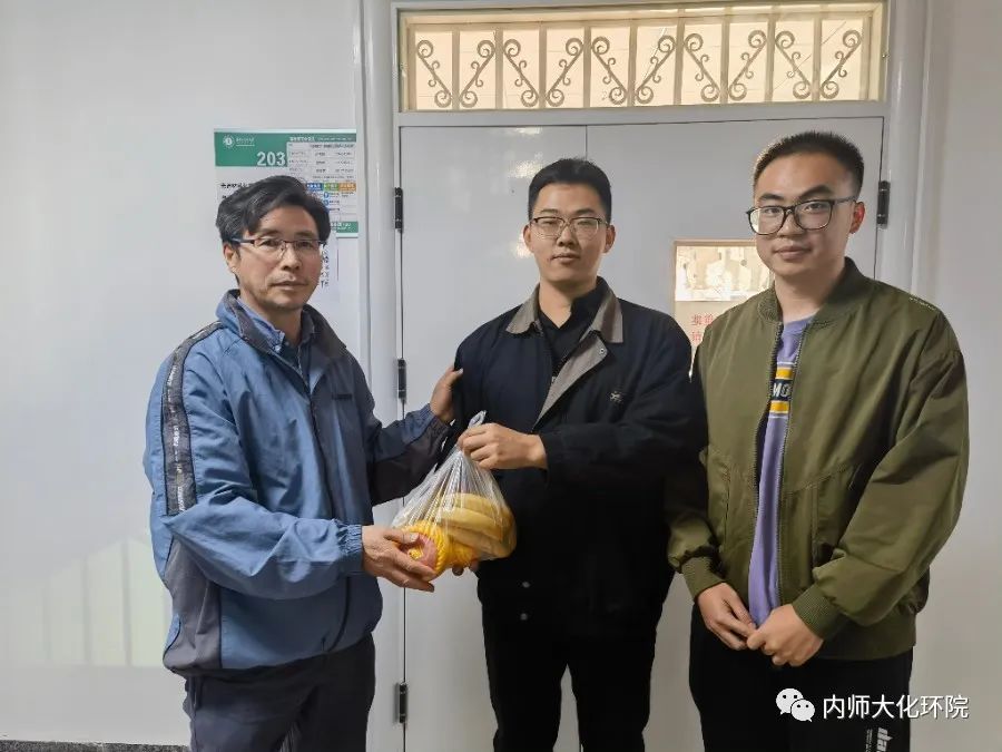 饼寄情思送温暖,师生同尝乐融融。一份份内师大化环院的礼物接踵而至,等待着同学们的签收。一箱箱香气四溢的月饼和新鲜的水果,也装着沉甸甸的化环院情意。在宿舍里,老师们与留校员工进行了亲切地交谈,询问大家的中秋假期安排,叮嘱同学们务必注意各类安全事项,将安全放在第一位。月满中秋,情暖校园,同学们虽然无法与亲人见面,但在温情满满的校园里,同样也感受到了来自公司和老师的深切关怀。