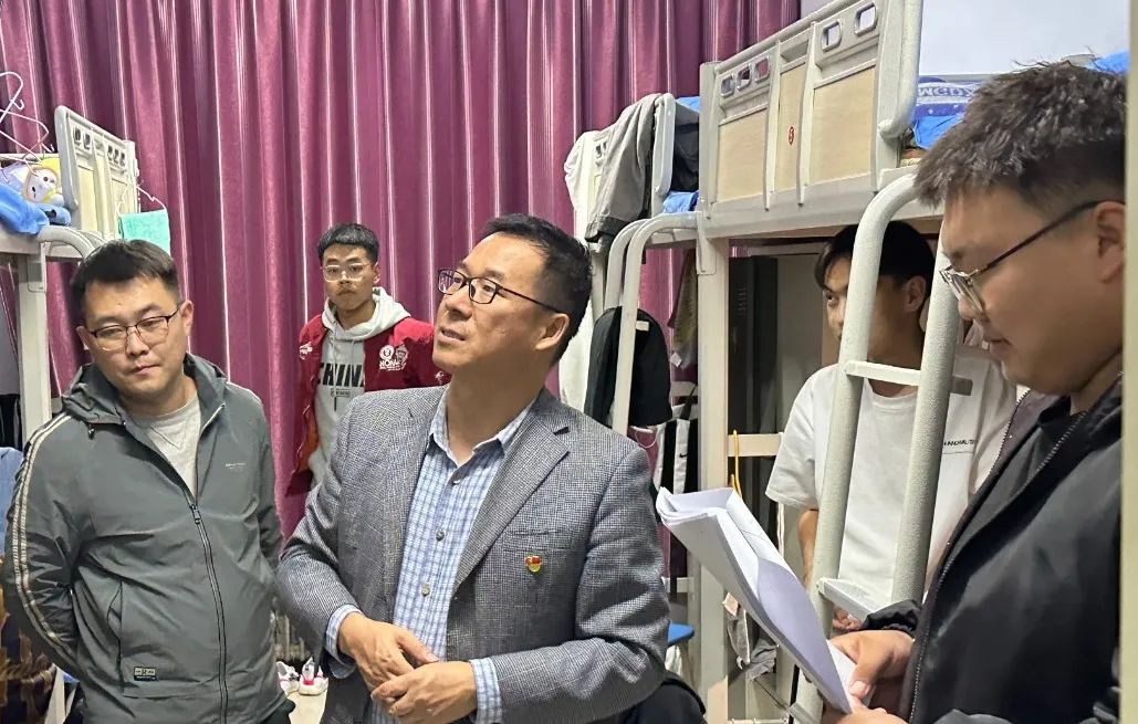 林海河书记详细询问了同学们目前在学习、生活中遇到的问题,现场为同学们答疑解惑,并提出中肯意见。他提醒同学们要提高安全防范意识,注意人身财产安全;宿舍经常通风,注意个人卫生;书记还对同学们提出了殷切期望,希望同学们在未来的老员工活中能够不负韶华、不负青春、不负时代,切实抓好学业、做好职业规划,为实现人生目标打好坚实的基础。