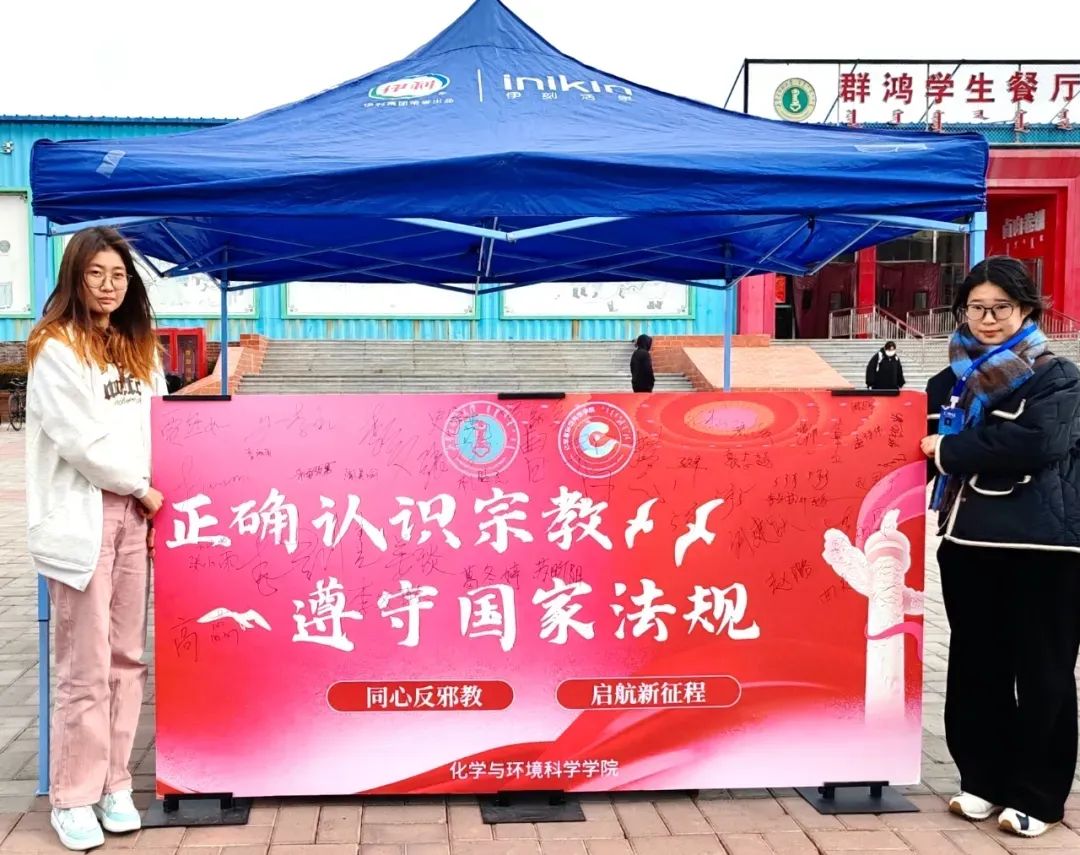 同学们分发有关正确认识宗教的宣传单,开展了签名活动,进一步树立了同学们正确的宗教观念,加深对国家宗教政策法规知识的了解。