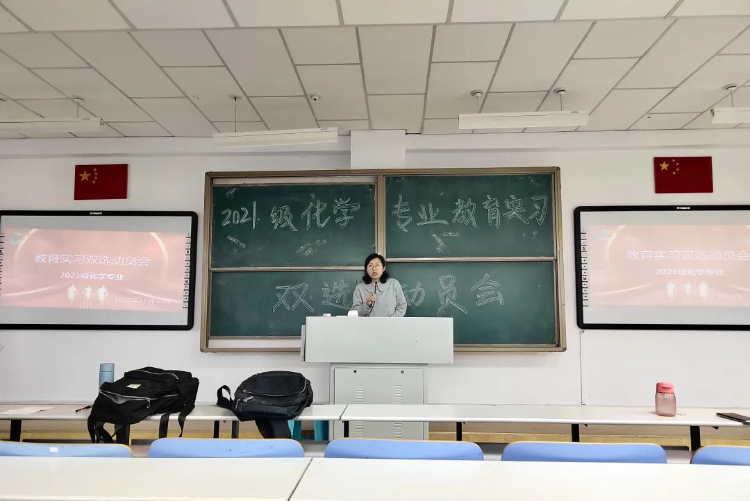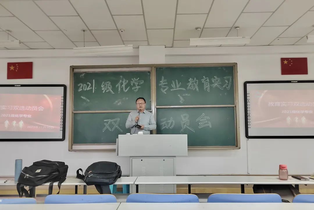 为有效落实教育实习双选,为了让每位师范生能正确认识教育实习的目的、任务,11月30日,公司在盛乐校区行知楼118室,举办了2021级化学专业教育实习双选动员会。副经理包永胜出席会议,2021级化学专业的全体本科生及教育实习的带队教师参加会议。会议由教法化工教研室主任王海燕主持。