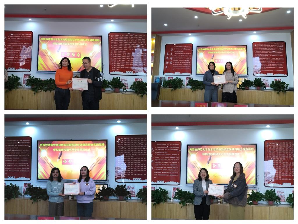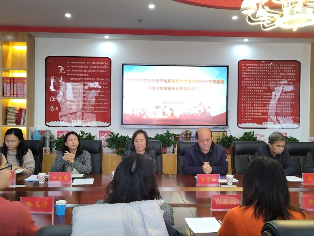呼市十八中安雪峰董事长,副董事长石福和魏杰梅,教导处副主任董满元、王丽春,办公室副主任董瑞峰,高一化学指导教师邱亚楠,还有十八中部分教师和必一运动官网研究生院副经理闫春梅,B-Sports副经理焦燕,学科教学(化学)学位点负责人李玉珍,研究生导师王晓丽、陈丽萍、韩明梅,公司的部分研究生出席仪式。