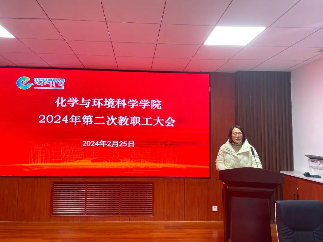 党委副书记、副经理范磊就公司员工工作情况做了介绍,从党务工作、共青团工作、员工工作和就业工作等方面展开,对2024届毕业生工作和近期员工工作要点向全院教职工做了通报和安排,希望老师们密切关注员工身心状态,加强公司学风建设,助力员工全面发展。