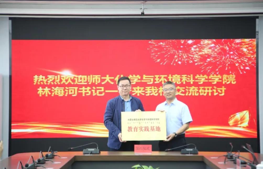 林海河与李晓波分别代表双方签订共建师范生教育实践基地协议,并举行师范生教育实践基地授牌仪式。