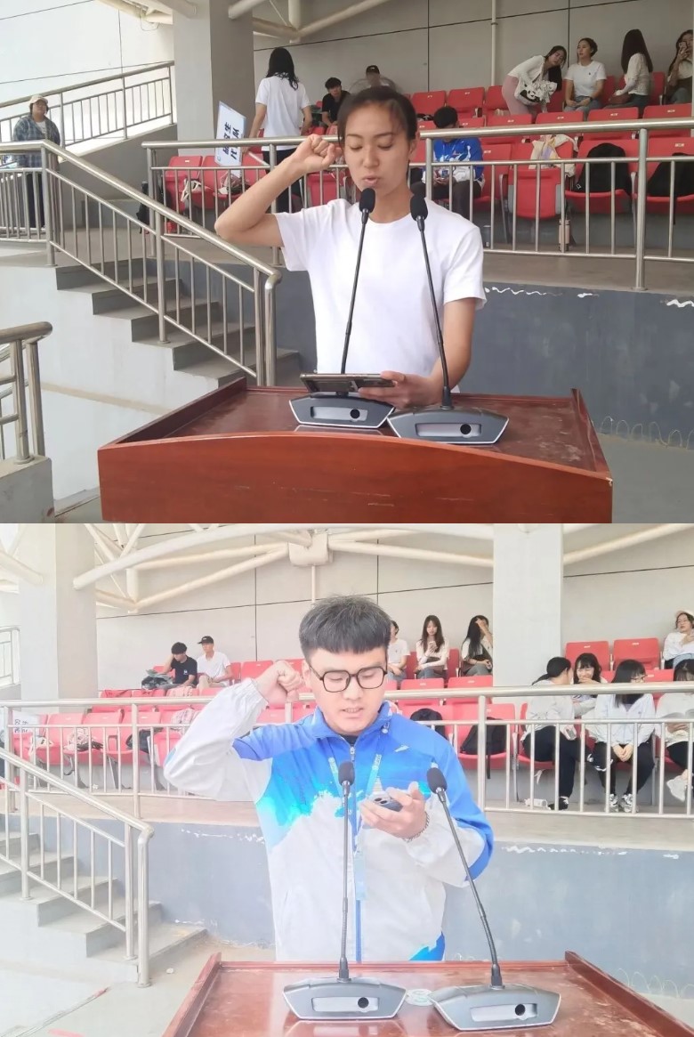 运动员代表庆德玛同学,裁判员代表乌达木同学进行了庄严宣誓。他们表示会坚决遵守比赛纪律,坚持原则,做到严肃、认真、公正、准确,执行各项规章制度,赛出风格,赛出水平,发挥团结拼搏、公平竞赛的体育道德风尚。