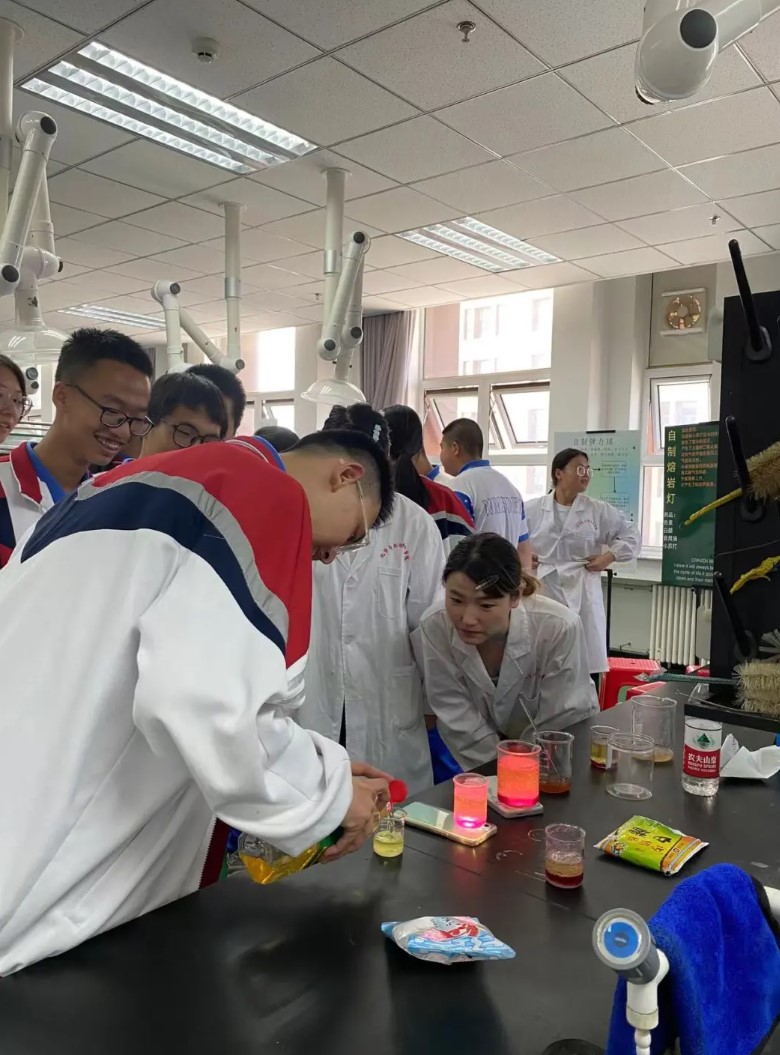 这是一场别开生面的化学科普实验活动。这场活动是由一群富有激情和创新精神的老员工发起的,他们带领一群充满好奇的高中生,一起探索神奇的化学世界。
