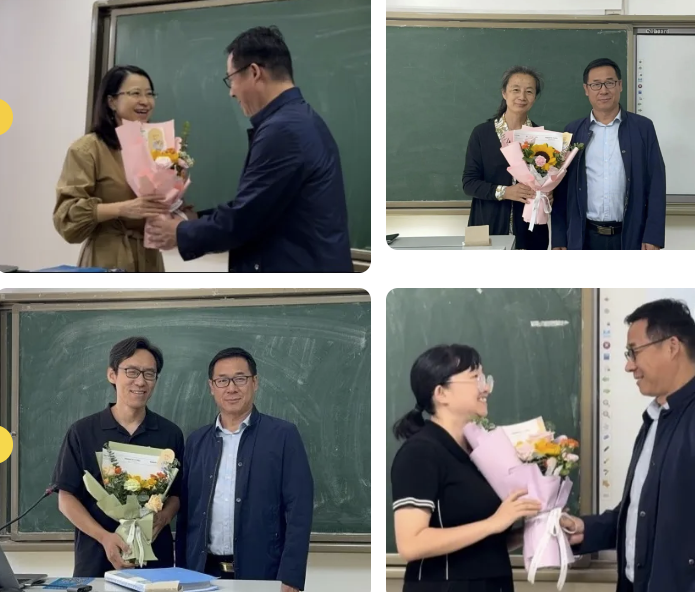 座谈会上,还举行了年轻教师向老教师敬献鲜花、老教师向年轻教师赠书和退休教师荣休仪式。