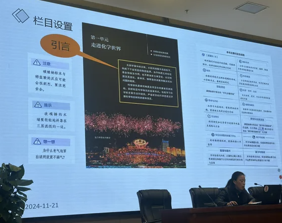 下午,南通市启秀市北初级中学的丁玉霞副董事长作题为《从“教材”走向“学材”——人教版初中化学新教材学习体会》的专题讲座。丁老师首先阐述了新教材的整体框架与编写思路,突出其重视员工实验、创新及问题解决能力培养的特点,接着详细解读了重点章节与难点知识,如物质性质与变化、化学方程式、酸碱盐等,且佐以实际与教学案例,助力我们深入直观地认识新教材。 通过教学展示与讲座分享,有力地促进了教师课程理念的更新,为初中化学教学质量提升奠定坚实基础,有望带动区域化学教育迈向新高度,在教学方法改进、教材理解运用等多方面产生深远且积极的影响。