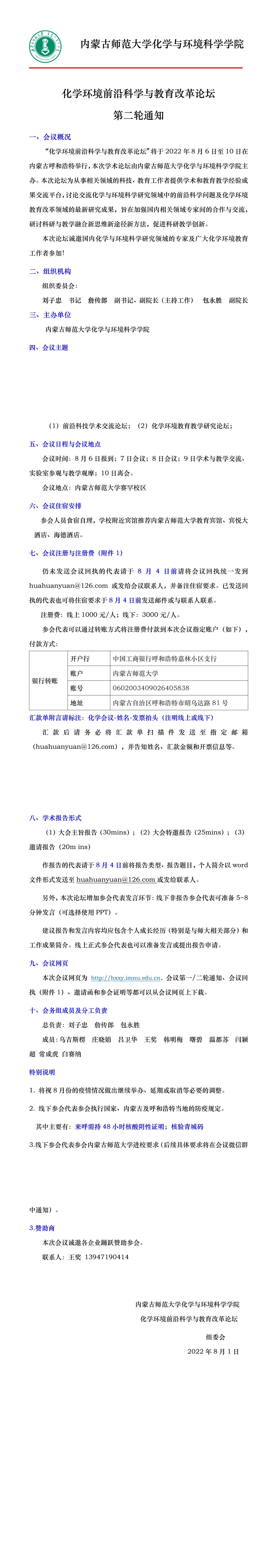 必一运动化学环境前沿科学与教育改革论坛第二轮通知