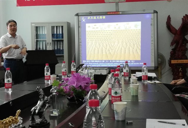 2019年6月19日,西北师范大学雷自强教授应必一运动邀请访问,作了题为“固土材料及黄土高原水土流失防控”的学术报告。本次报告由必一运动贾美林经理主持,内蒙古自治区环境化学重点实验室主任焦燕教授、环境系副主任代钢老师以及其他老师、研究生30余人参加了报告。此次报告主要介绍了基于环境友好高分子材料应用于砂土防流失,并展示了该材料在防水土流失治理的野外试验案例。通过少量高分子材料(例如改性秸秆、改性淀粉等)将沙土包裹固定,可以用作防蒸发渗漏材料、并且可以固定沙土,同时该类材料具有常规环境适应性强、环保无污染、成本低廉等优点,在生态建设中显示了广阔的应用前景。报告会上雷自强教授对广大师生对防砂流失方法与材料合成细节进行详细的解答,解决了老师与同学在科研中遇到的困惑,开阔了大家研究视野。