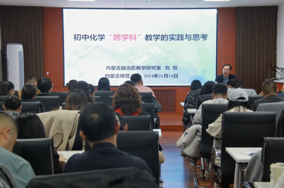 化学教育智慧交融,专业引领砥砺前行2024-11-15为助力教师在教学实践中更好地培养员工的化学核心素养,适应新时代对化学教育提出的新要求。11月14日,内蒙古自治区教学研究室体美劳教研部主任、中学化学教研员刘恒,公司学科教学(化学)及课程与教学论(化学)专业学位点负责人李玉珍教授作了前沿理念与实践经验的深度分享,国培计划(2024)的49名初中化学优秀教师聆听了讲座。上午,刘恒老师作题为“初中化学跨学科教学的实践与思考”的讲座。活动伊始,刘恒老师巧妙设置... -
